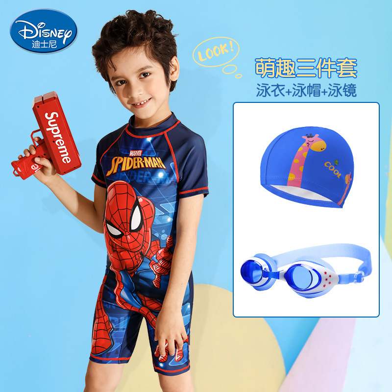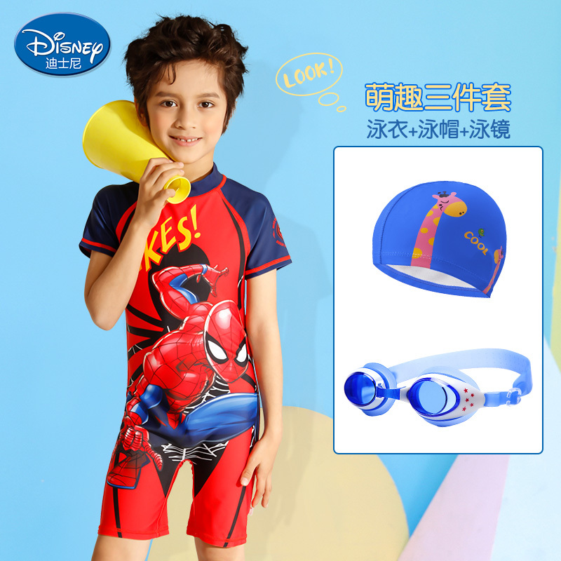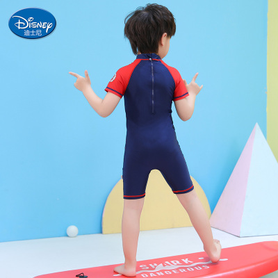 Disney children's Swimsuit Boys' one-piece Spiderman hot spring swimsuit kids' sun protection and quick drying equipment
