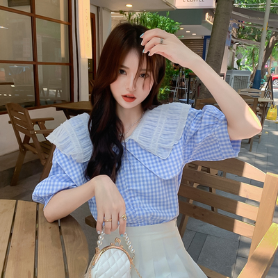 The new French design in summer with a unique baby collar bubble short sleeve shirt