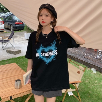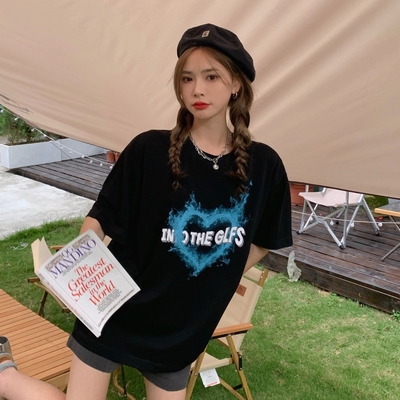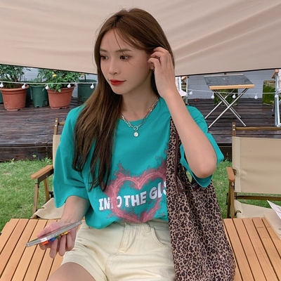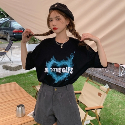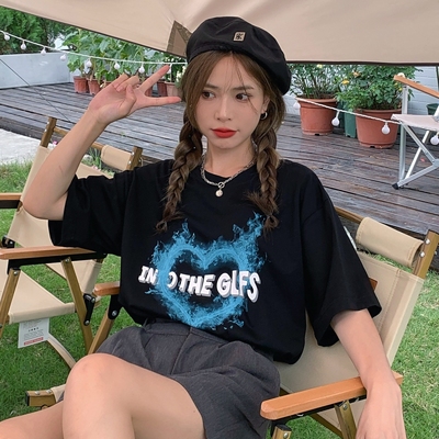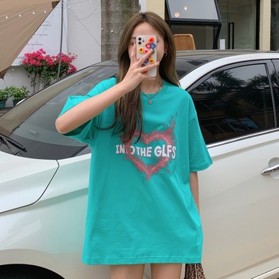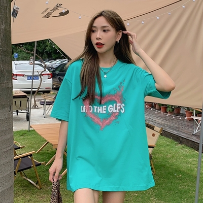 Real shot of Harajuku style short sleeve women's summer Korean fashion medium and long student's versatile loose round neck top