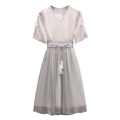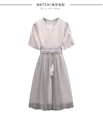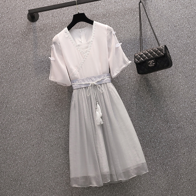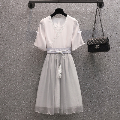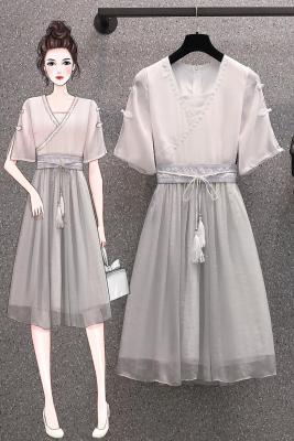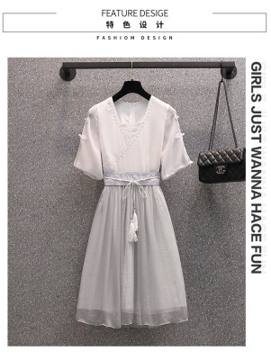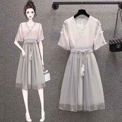 Real shot of large women's dress 2021 summer new fat mm cover meat foreign style Chinese style improved antique dress