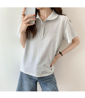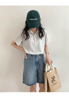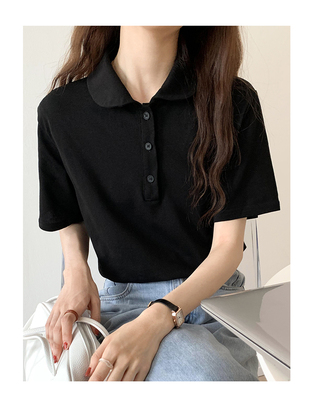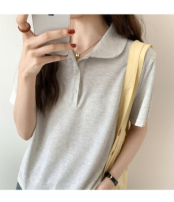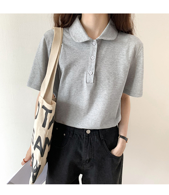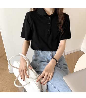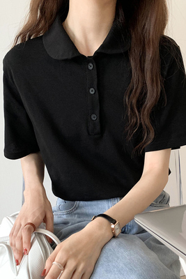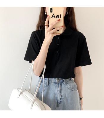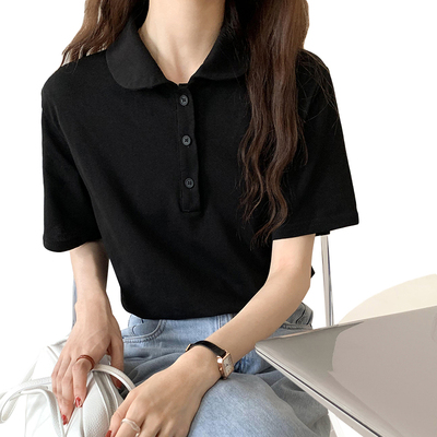Real shot of Hong Kong style pure color student's foreign style age reduction pure color versatile Short Sleeve Polo Shirt Short Sleeve T-Shirt female
