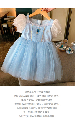 Chen Da Zhu l Ma girls' dress 2021 summer new Disney Elsa princess dress short sleeve dress