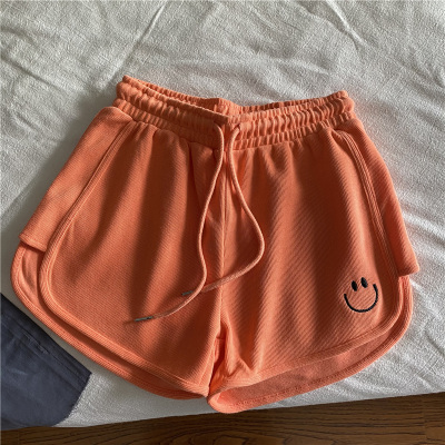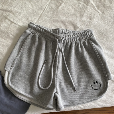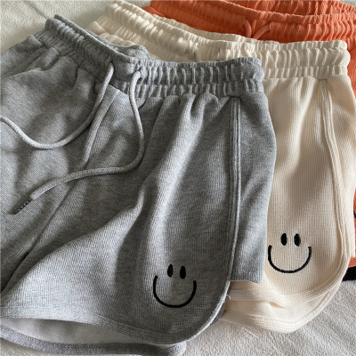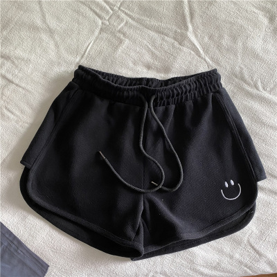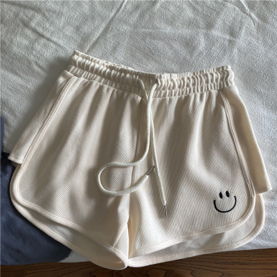 Comfortable fabric embroidered sports shorts women's summer new loose elastic waist word wide leg casual hot pants