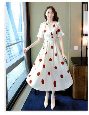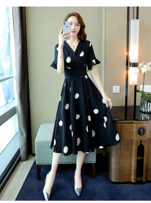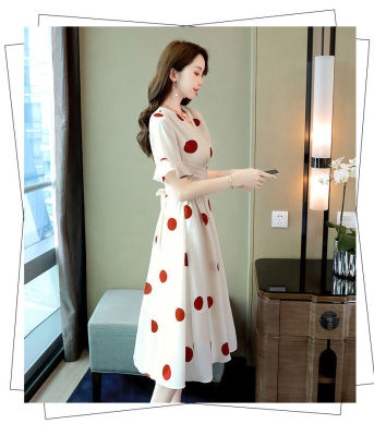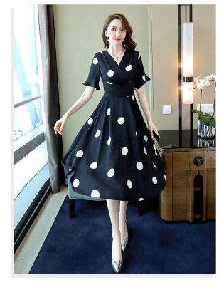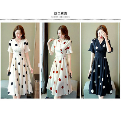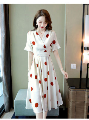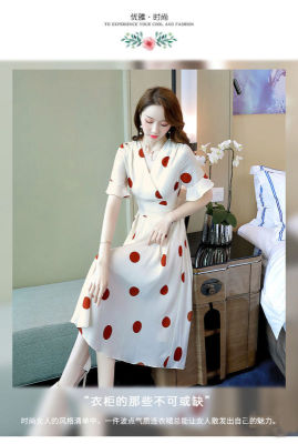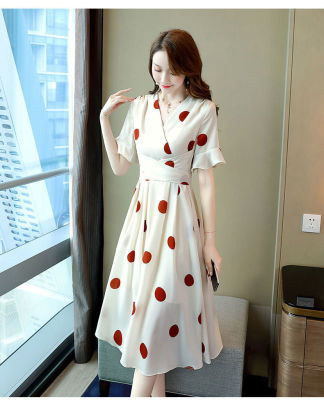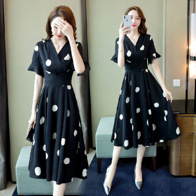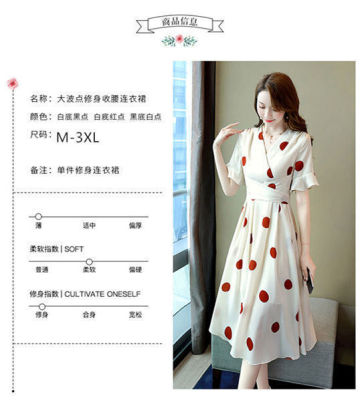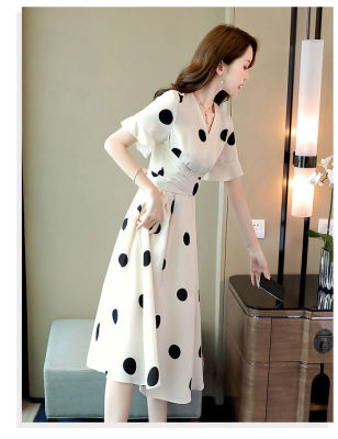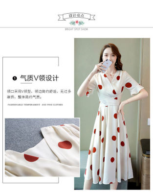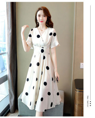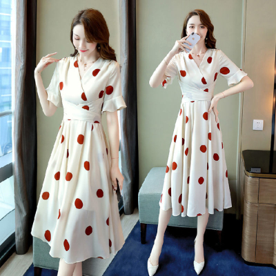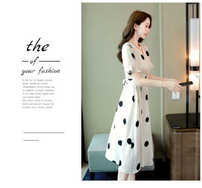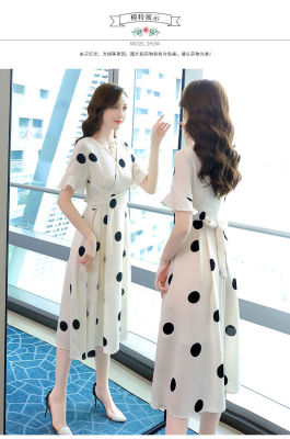 Polka Dot Dress spring and summer new women's short sleeve fashion waist closed show thin temperament light mature style skirt