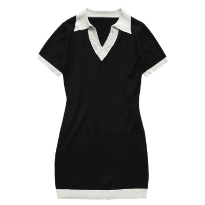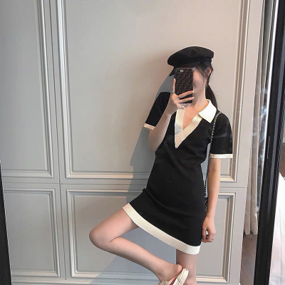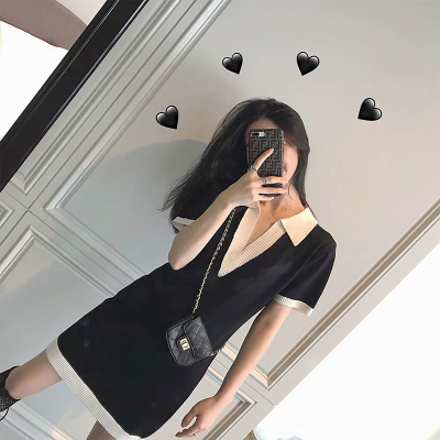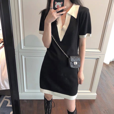 2021 summer new French Retro High Waist V-neck small black dress super fairy first love egg Platycodon knitted dress