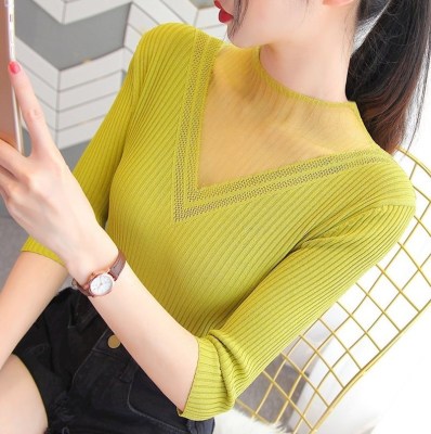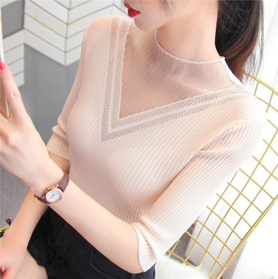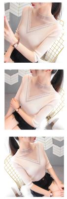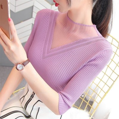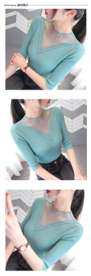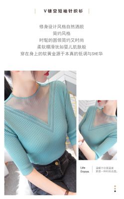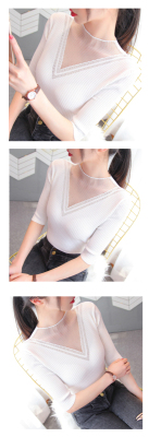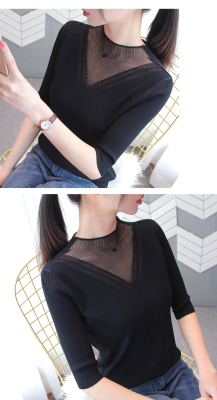 Western style spring ice silk T-shirt women's 7 / 4 sleeve thin base shirt with western style age reducing half sleeve top