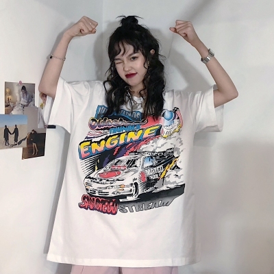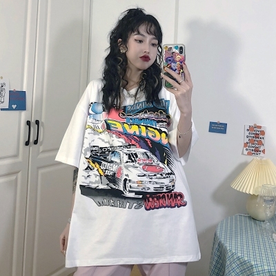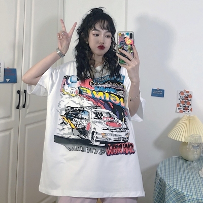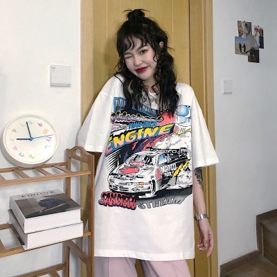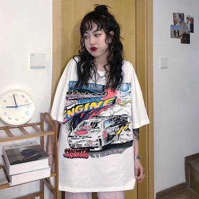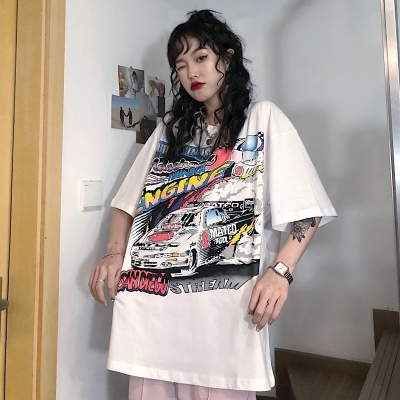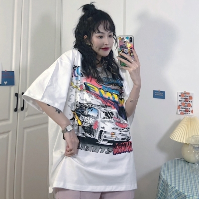 Real shot short sleeve t-shirt female foreign trade street personality trend medium length loose large size top