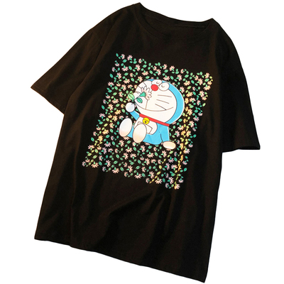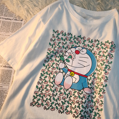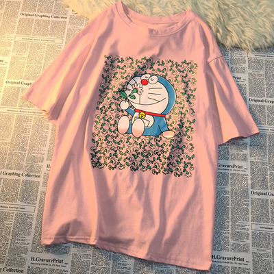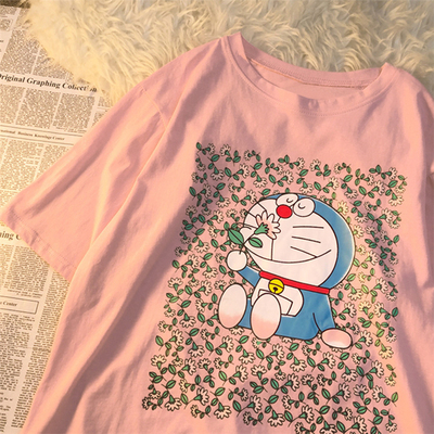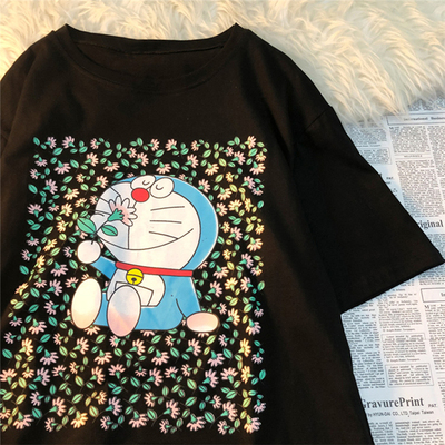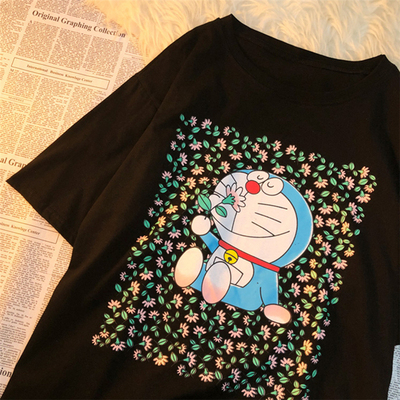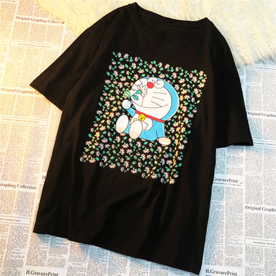 Official map real price cotton 2021 summer new Doraemon print loose short sleeve T-shirt for women