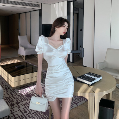New French Satin short sleeve sexy high waist and thin buttock party dress
