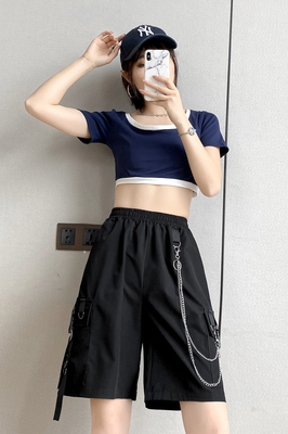 Real shot overalls shorts women's 2021 summer loose casual pants Hong Kong fashion sports pants slim Capris