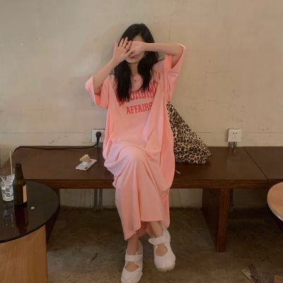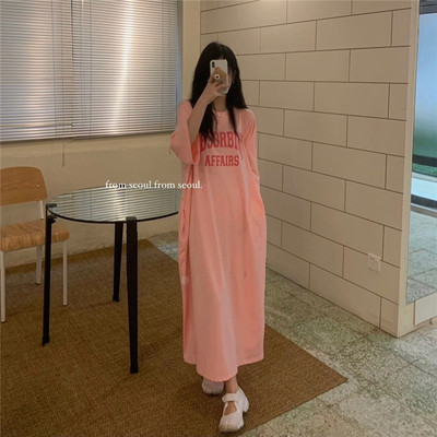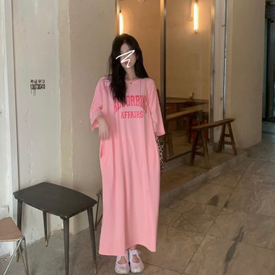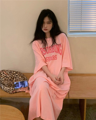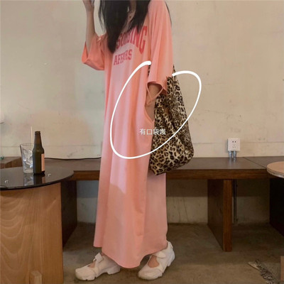 New real price sweet letter print medium length loose T-shirt pocket dress