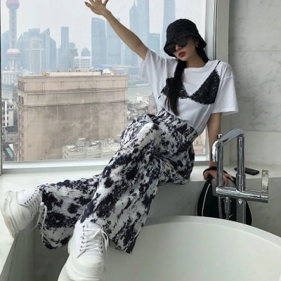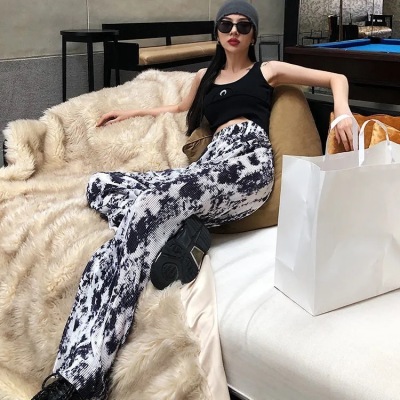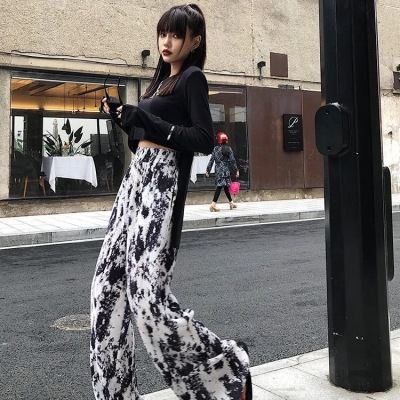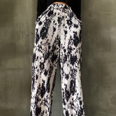 Wide leg pants women's high waist drop summer thin ink dyed pleated toothpick pants loose and slim floor length pants
