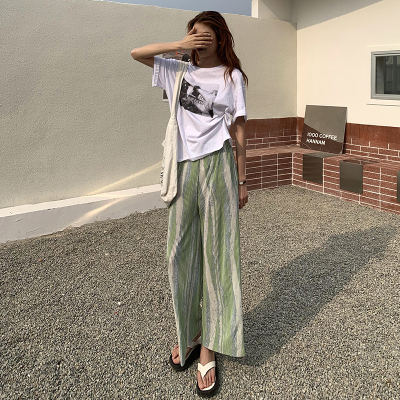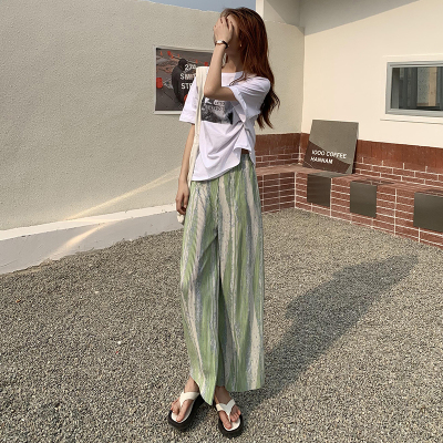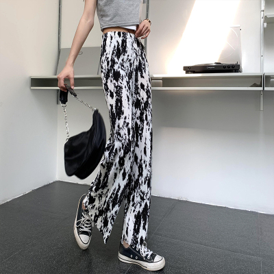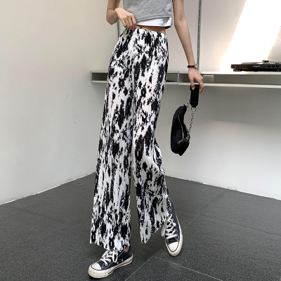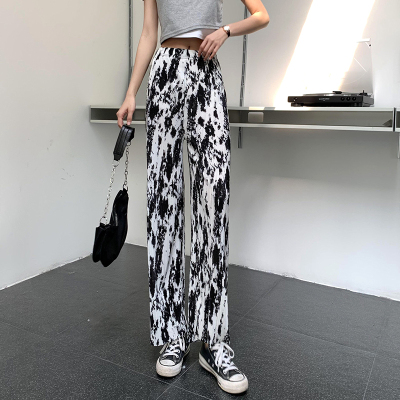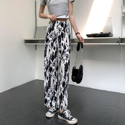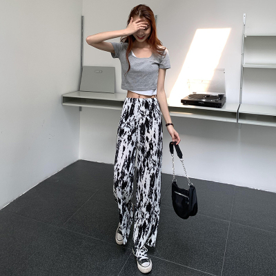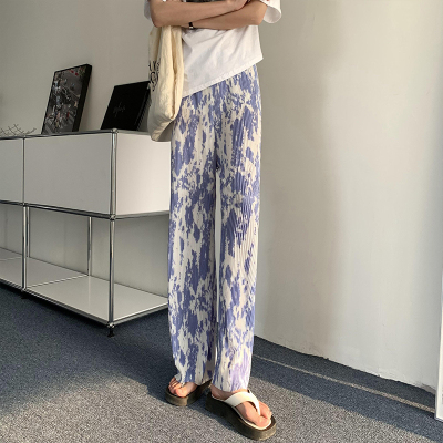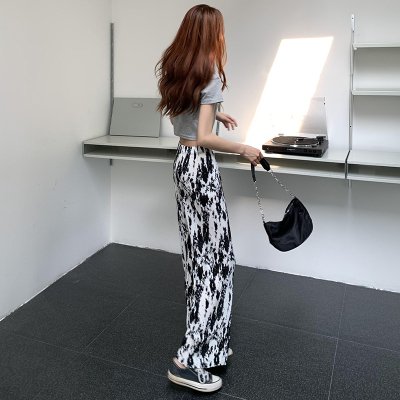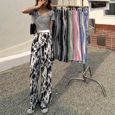 Tie dyed wide leg pants women's spring and autumn new high waist drop loose straight pants casual sweet cool pants fashion