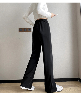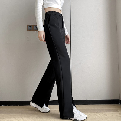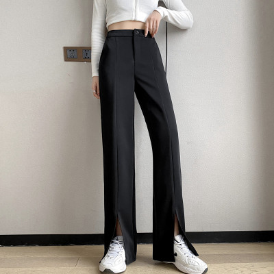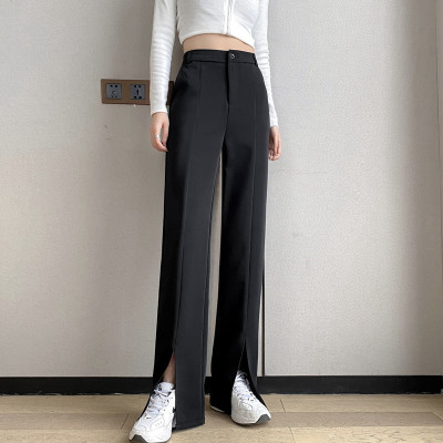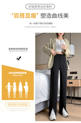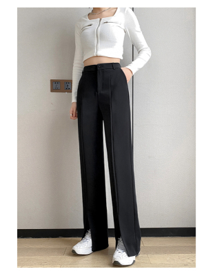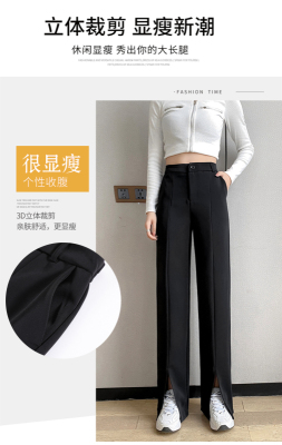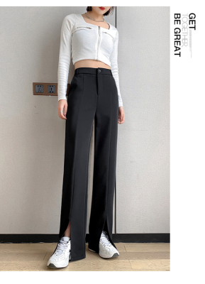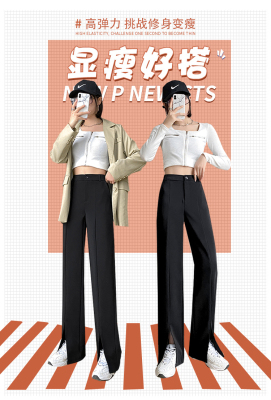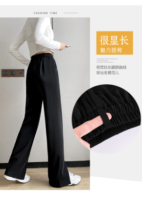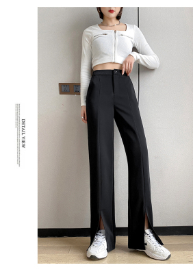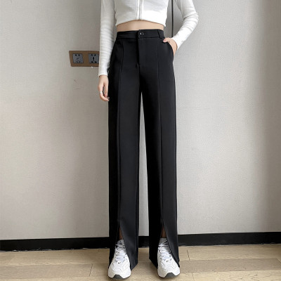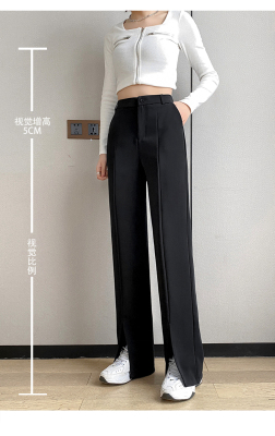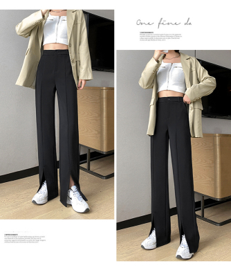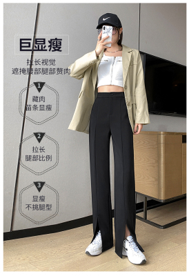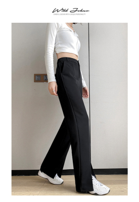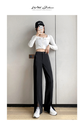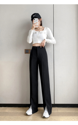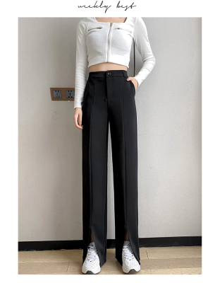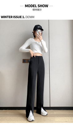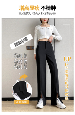 New thin split wide leg trousers straight trousers high waist down feeling floor dragging trousers black trousers