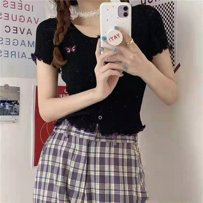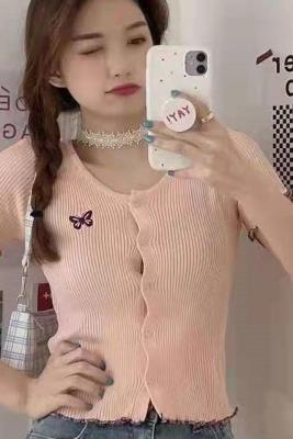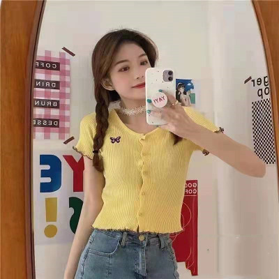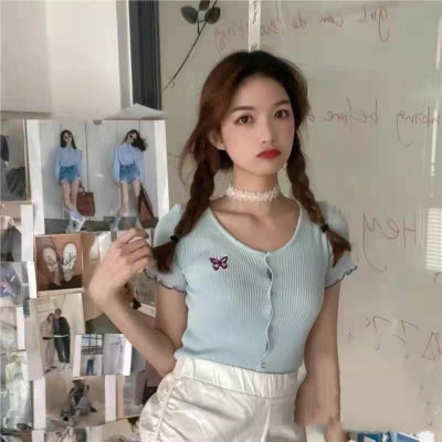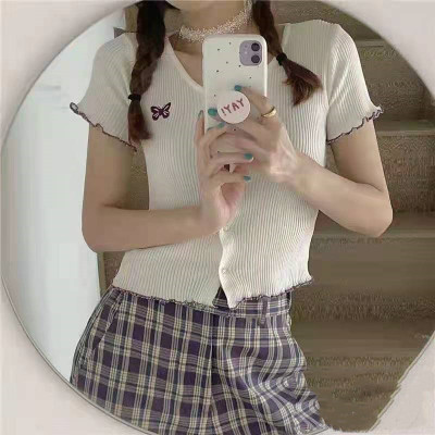 Summer new Korean version net Red Butterfly Embroidery short sleeve T-shirt women's super fire base Shirt Short top fashion