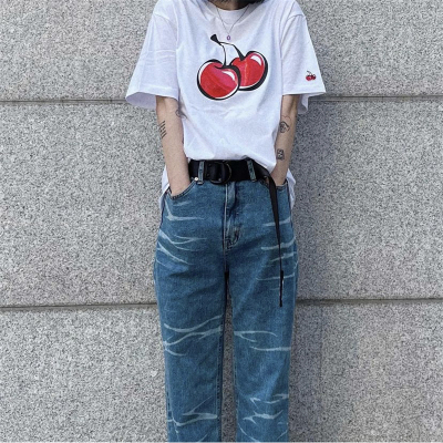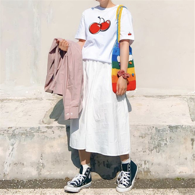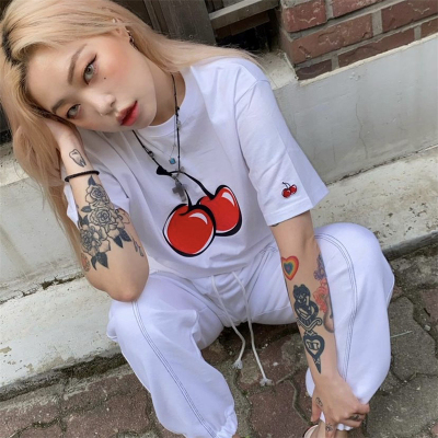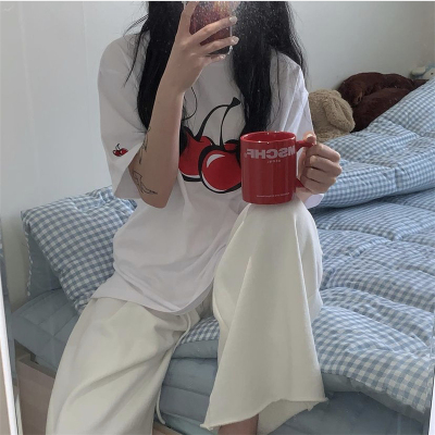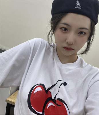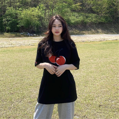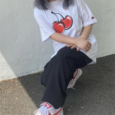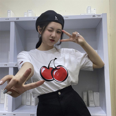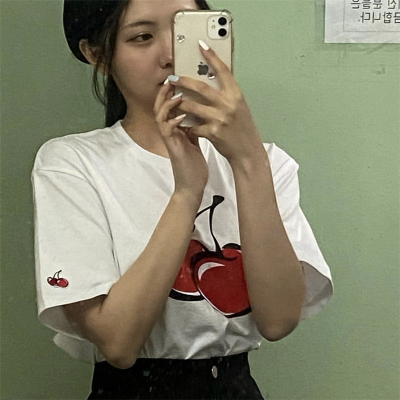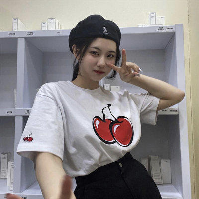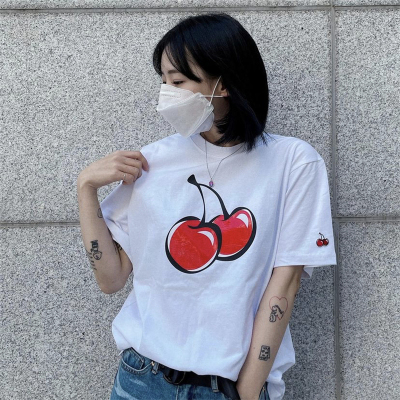 ~Summer lovely sweet black and white cherry Short Sleeve T-Shirt Top retro academic style 21