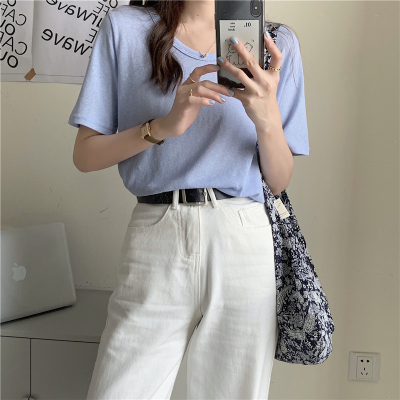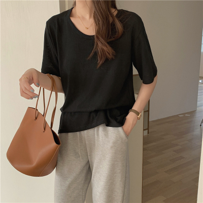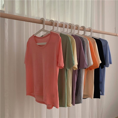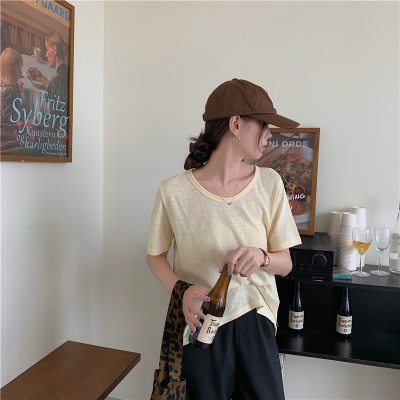 Real price slightly transparent short sleeve snowflake linen T-shirt women's summer 2021 new fashion V-neck fashion