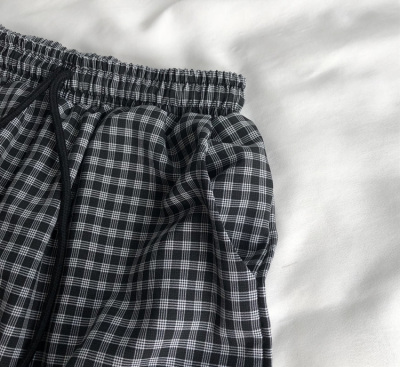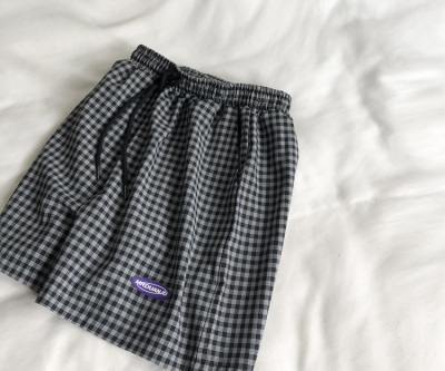 Real price retro Plaid Japanese style casual shorts women's Chiffon loose straight pants hot pants fashion