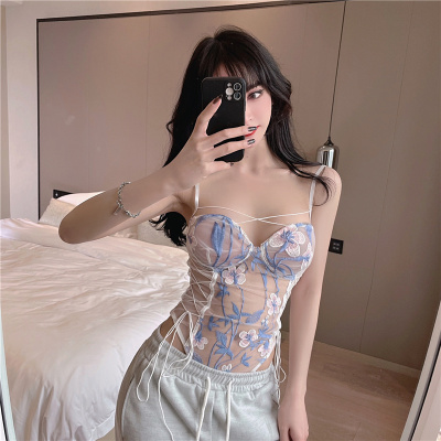 Real Price Embroidery suspender net lace one-piece dress women's perspective crotch private hot sexy underwear