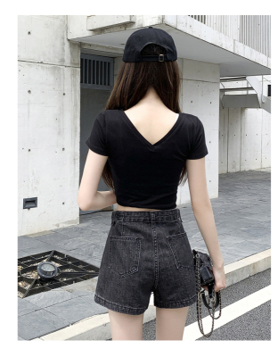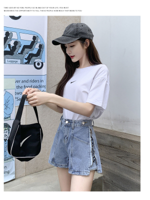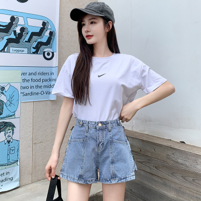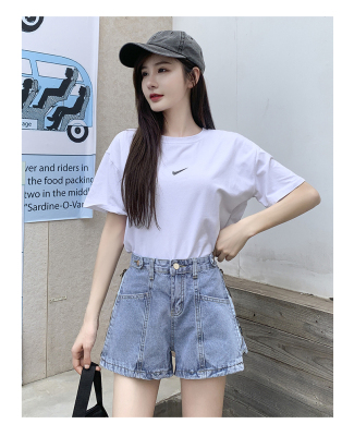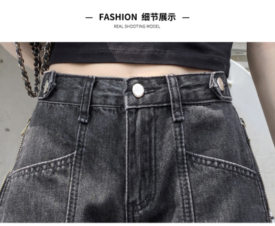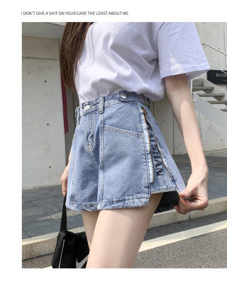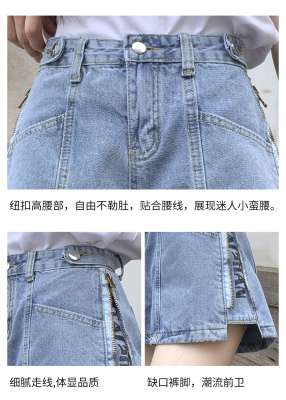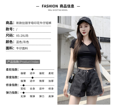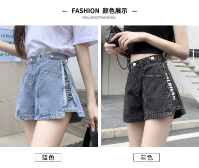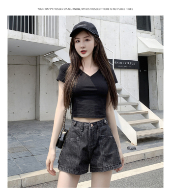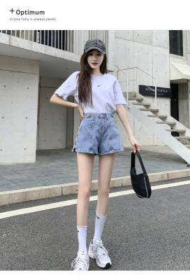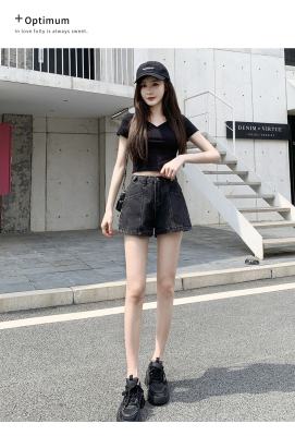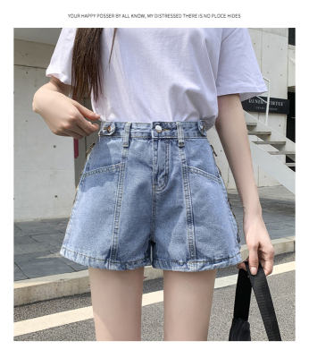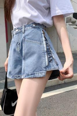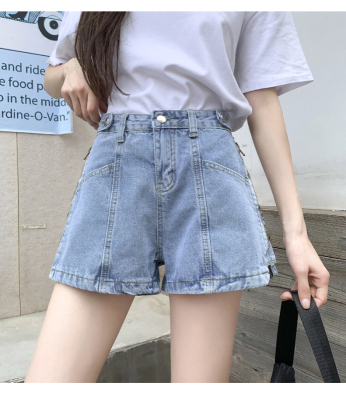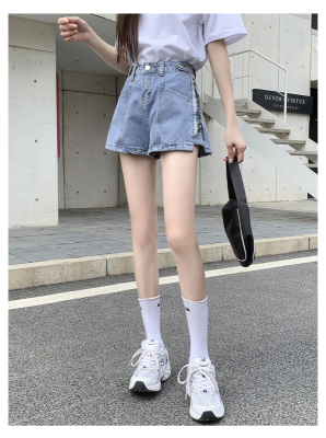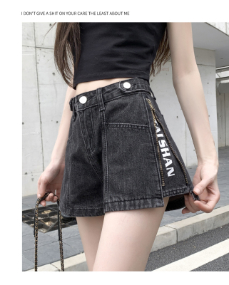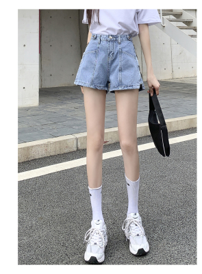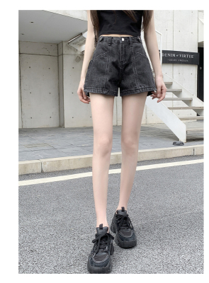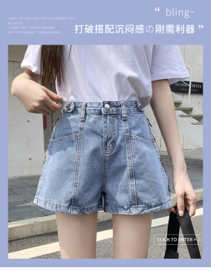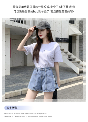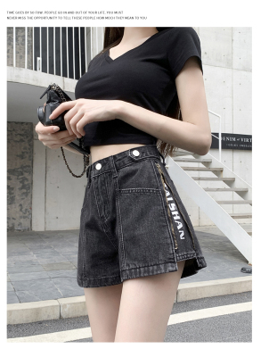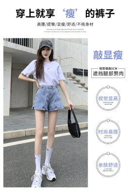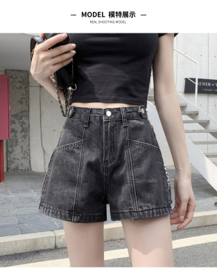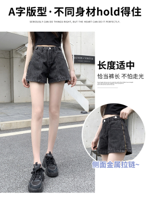 Photo shorts women's summer loose summer new slim super high waist net red wide leg A-line jeans hot pants zipper