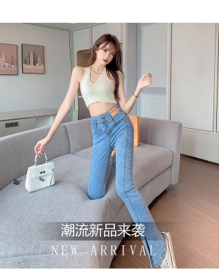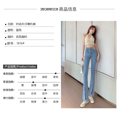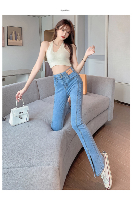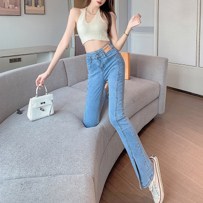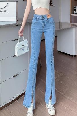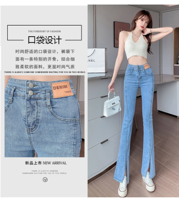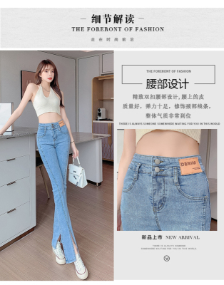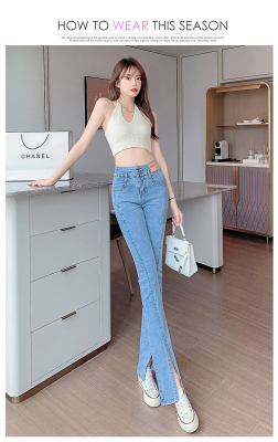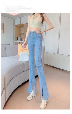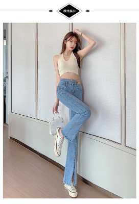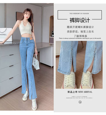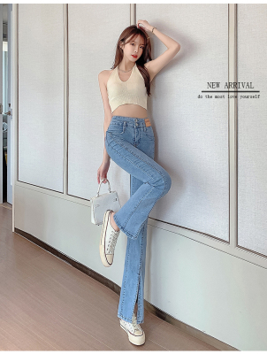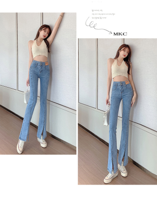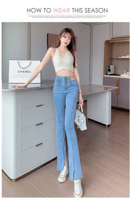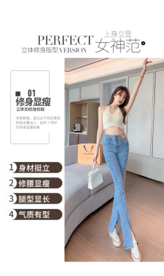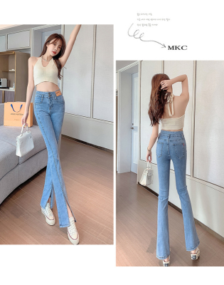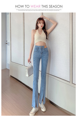 Real shot high quality split jeans women's Micro trumpet summer loose and thin stretch vertical feeling split straight pants