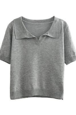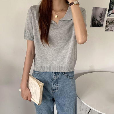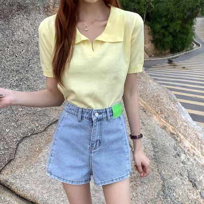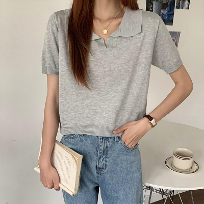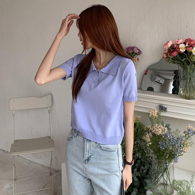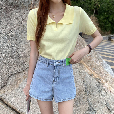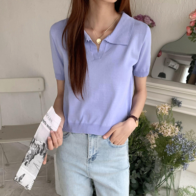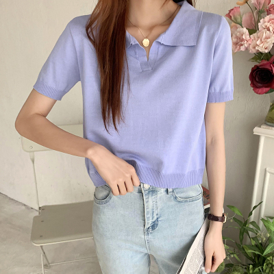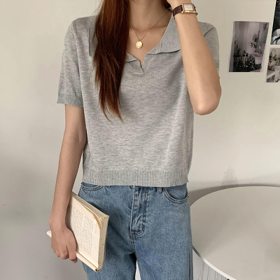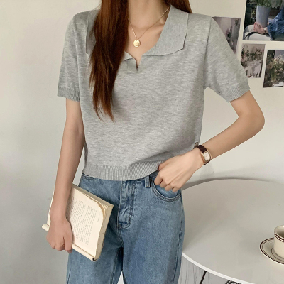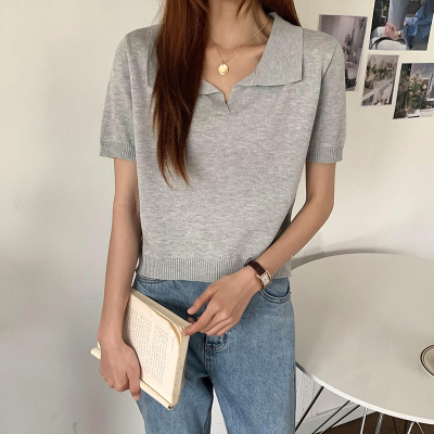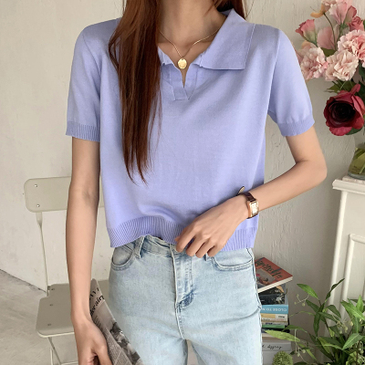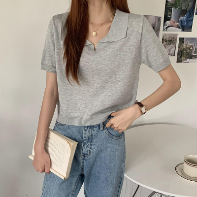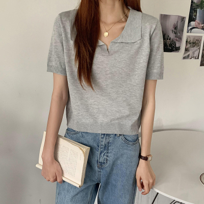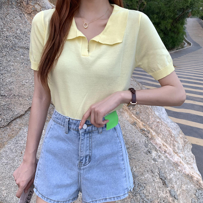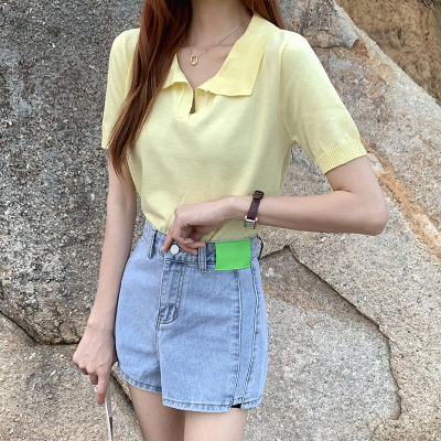 Real shot real price Korean Edition collar Short Knitwear versatile T-Shirt Top