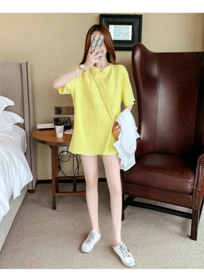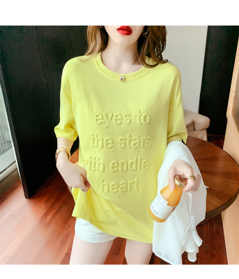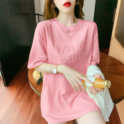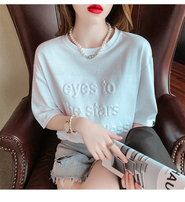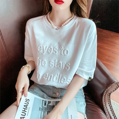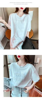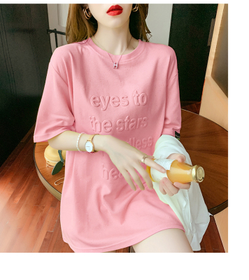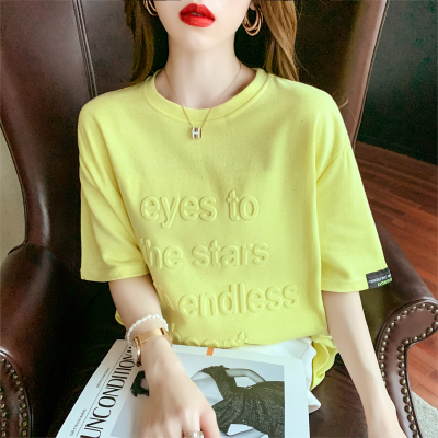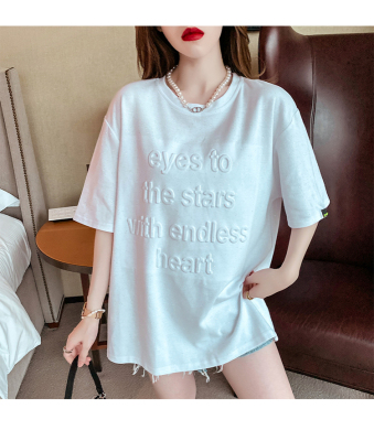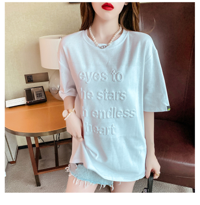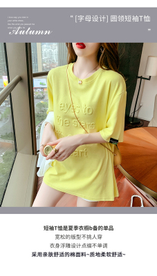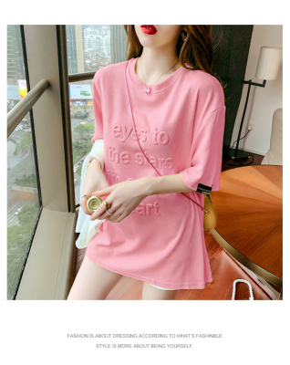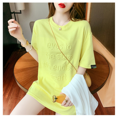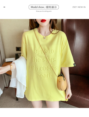 Real shot medium length short sleeve T-shirt for female 2021 summer new relaxed western style versatile half sleeve top