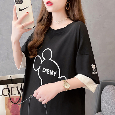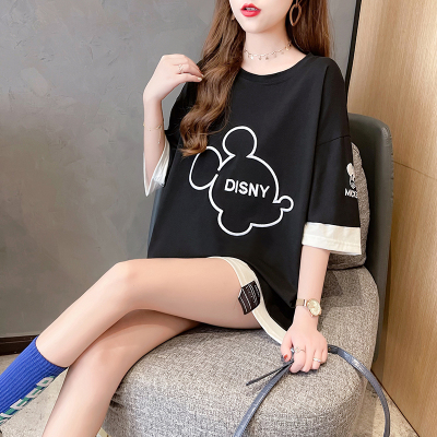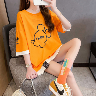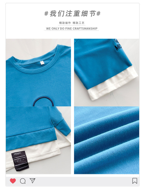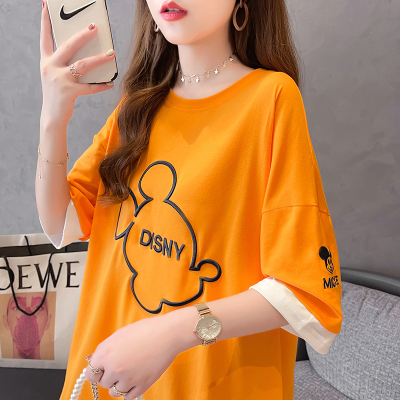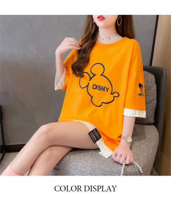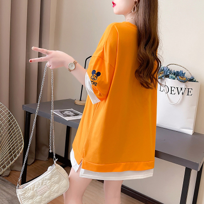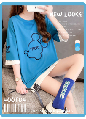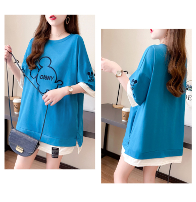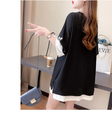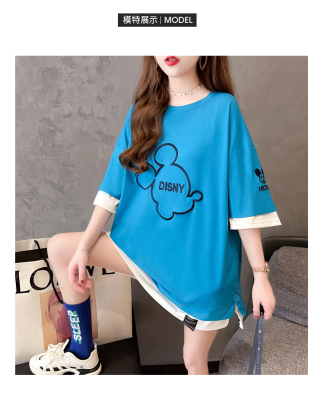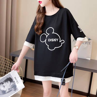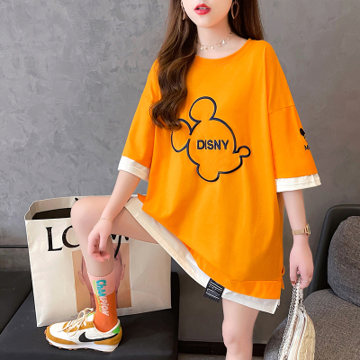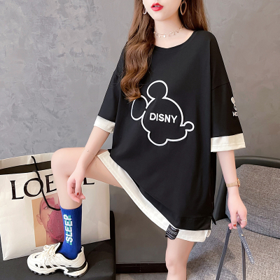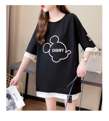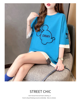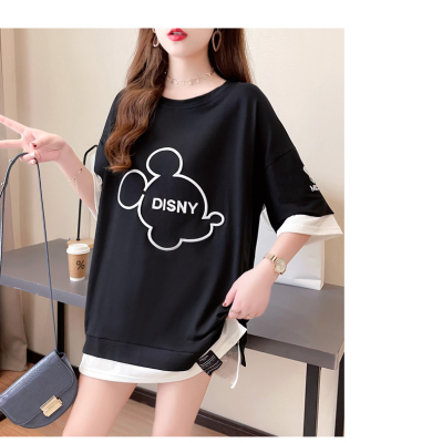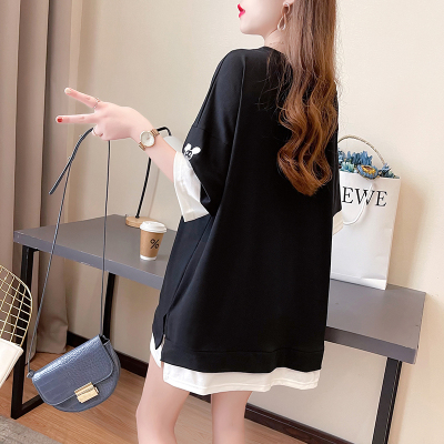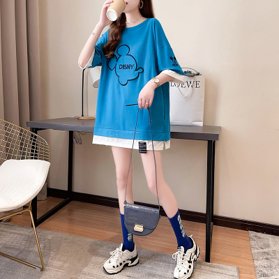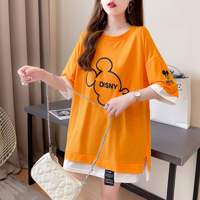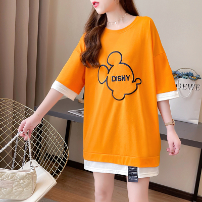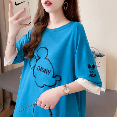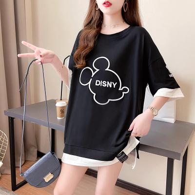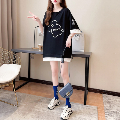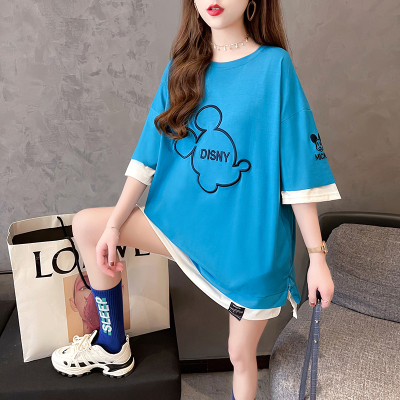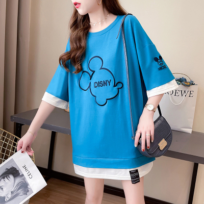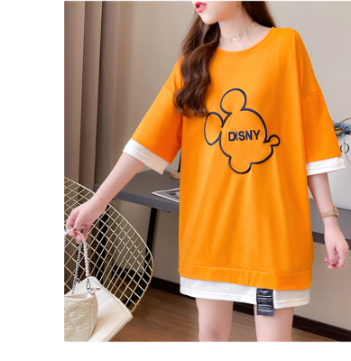 Real photo 2021 new net red fake two short sleeve T-shirt women's Korean summer loose cartoon embroidered top fashion