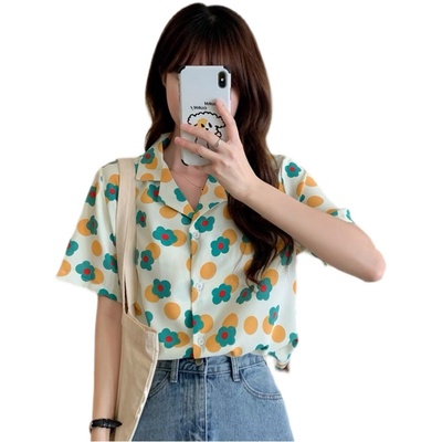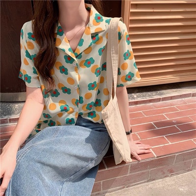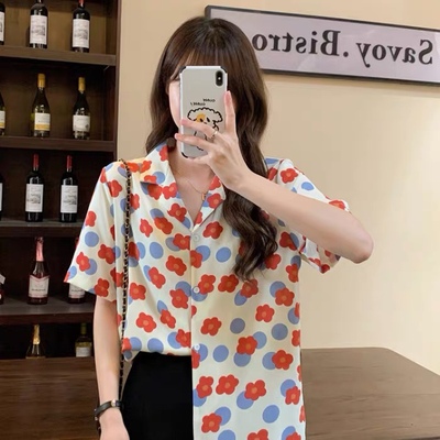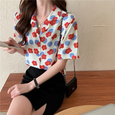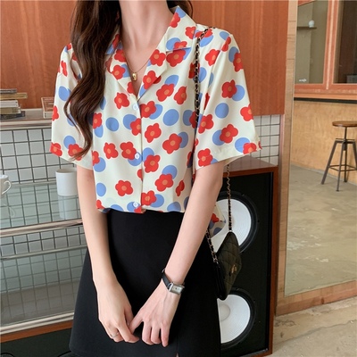 Hanfeng top summer new shirt women's sense of design niche casual slim print short sleeve shirt
