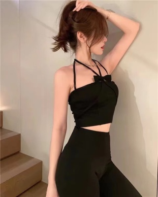Bow tie Halter waistcoat for women's summer exterior design small crowd sweet black with bottom coat
