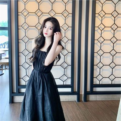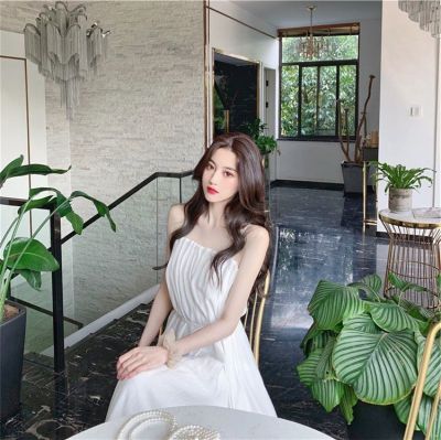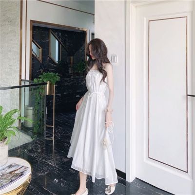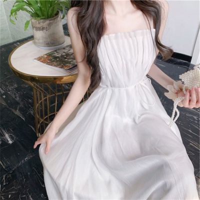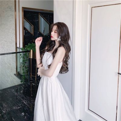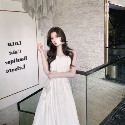 2021 French new style long skirt temperament design sense minority wear tea break white suspender dress children's summer