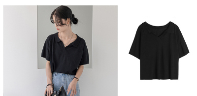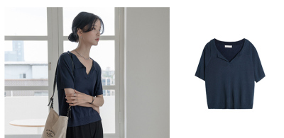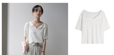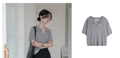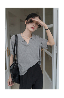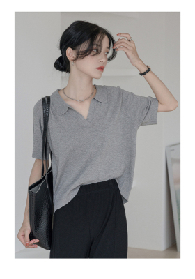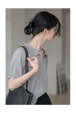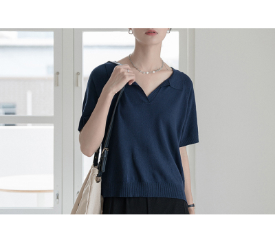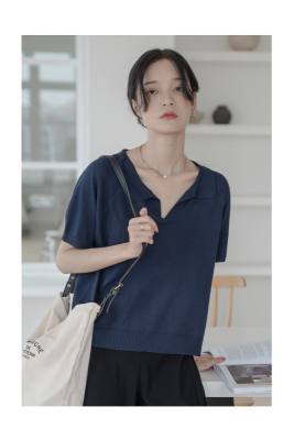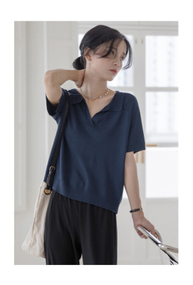 Knitted short sleeve T-shirt women's new summer collar design