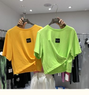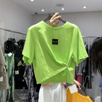 Elegant style pink irregular t-shirt female 2021 summer Korean high waist design sense minority casual short top