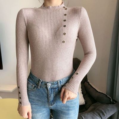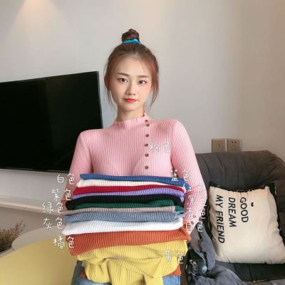 Real shot T-shirt women's Pullover autumn winter new sleeve button bottomed top slim fit Korean long sleeve sweater fashion