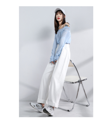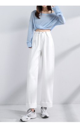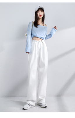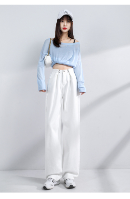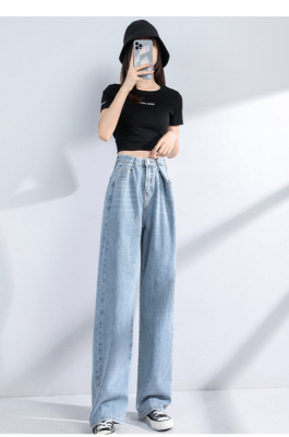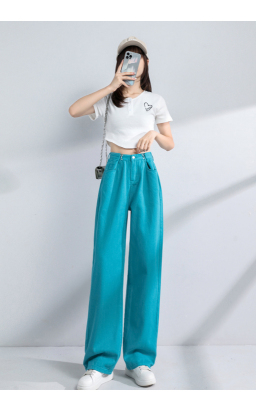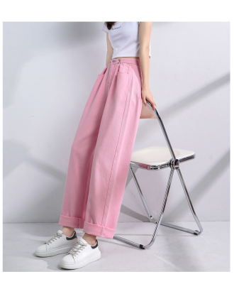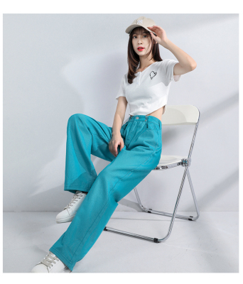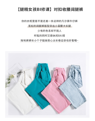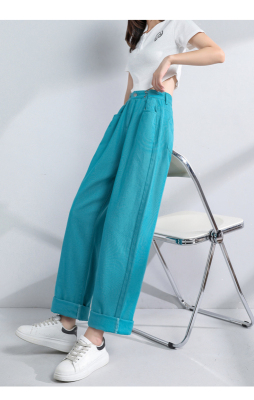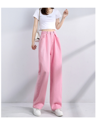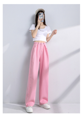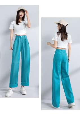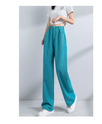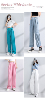Multi color wide leg jeans women's loose summer thin high waist slim design straight tube mop pants