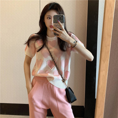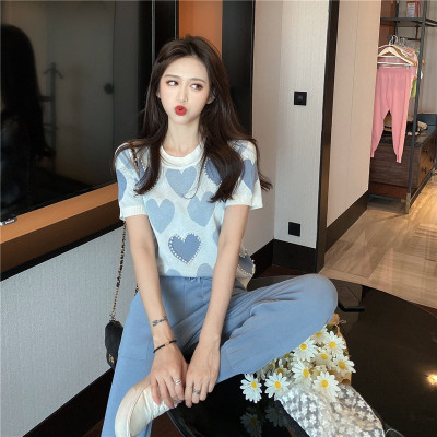 Ice silk knitted short sleeve women's summer thin new style design minority French gentle wind short style clothes