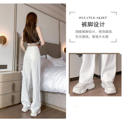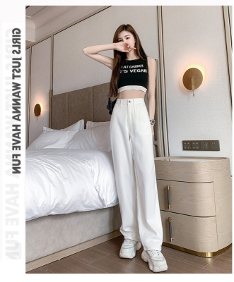 Loose wide leg pants#Light blue,white,Retro Blue;XS-XXL;Nine points,trousers,lengthen: