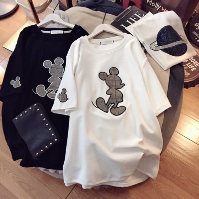 Mickey women's T-shirt short sleeve trendy brand white cartoon round neck ins trendy 2021 new loose thin bottomed shirt for women
