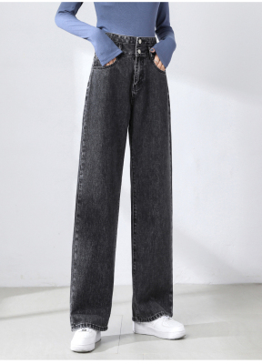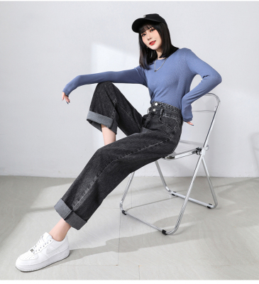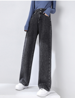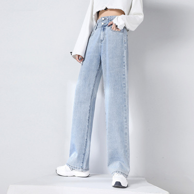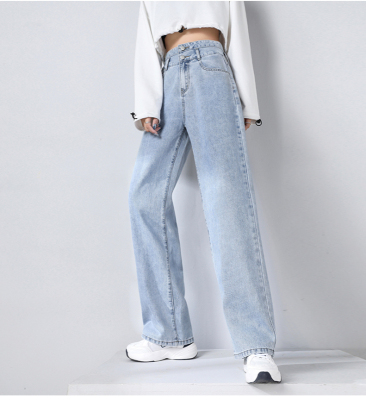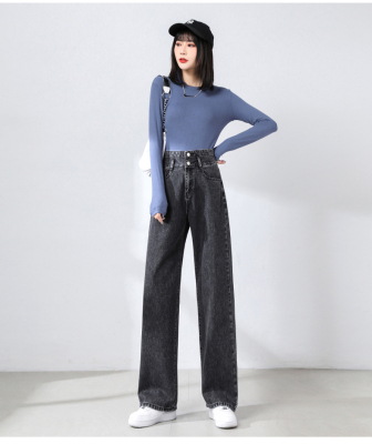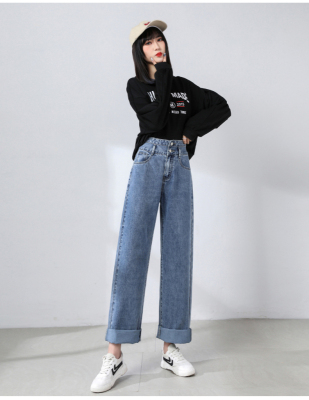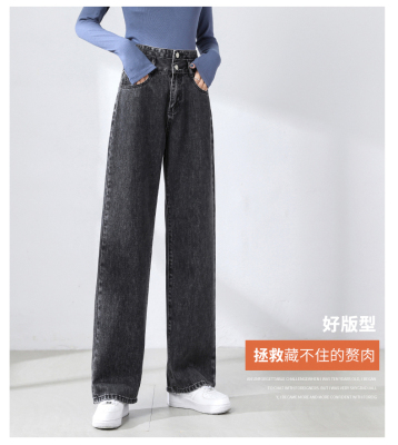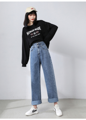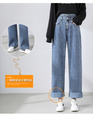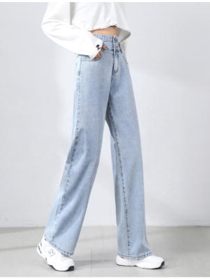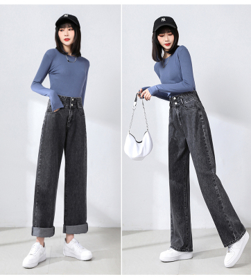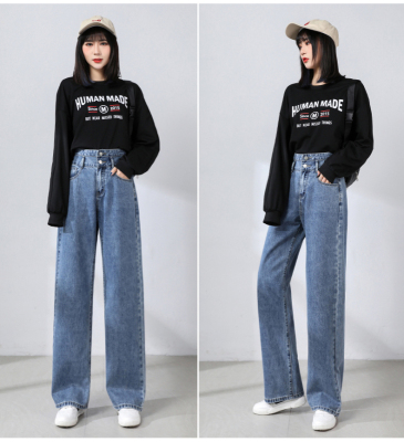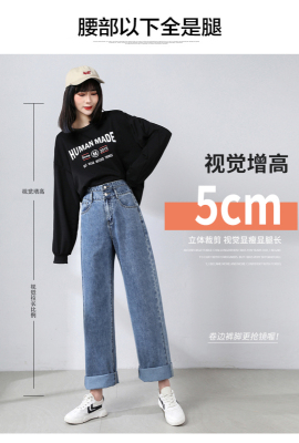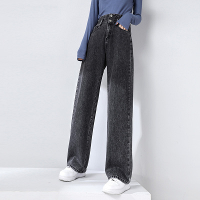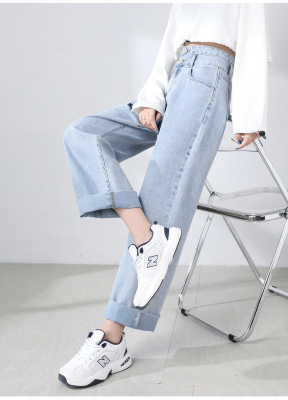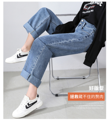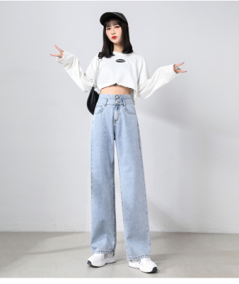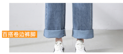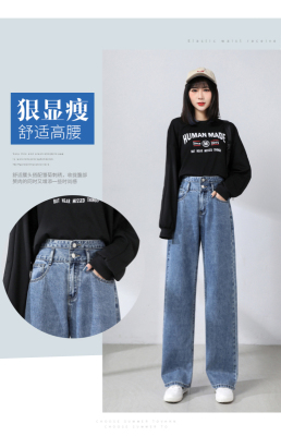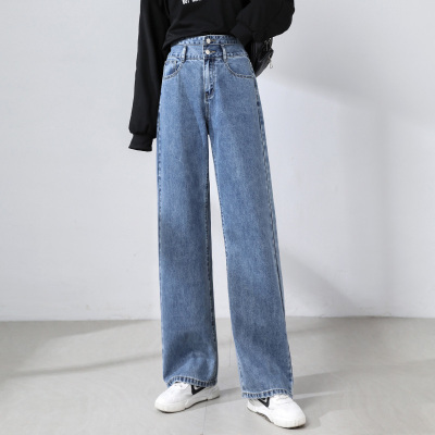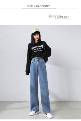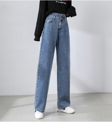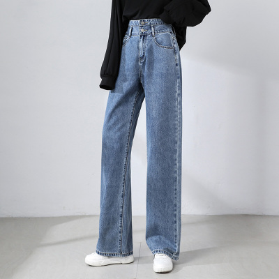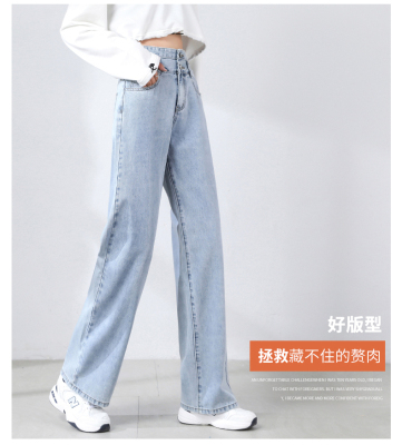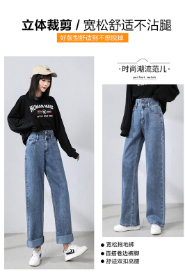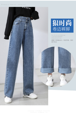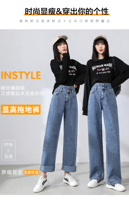 Real shot new net red tide current jeans women's summer thin pants straight tube loose high waist floor dragging pants