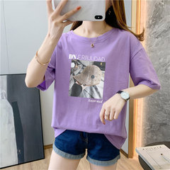 実際に26本の純綿の中で長めのゆったりとした大きなサイズの夏服9色の韓国版半袖Tシャツの女性を撮影します。