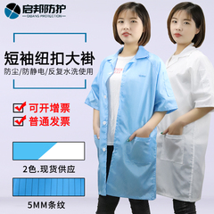 夏の静電気防止服の上着と半袖の短い服に塵がない白色の青い電子工場の作業服の防護服。