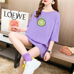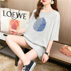 夏の中で長めの半袖の女性用のTシャツはバツ印の印紙の韓国版の大きいサイズの女性のゆったりしている学院の風の上着を開けます。