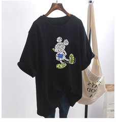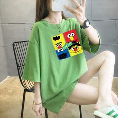 5つの色の夏季の太いMM 200斤の増大のコードの中で長い項の純綿の韓国版の半袖Tシャツの女性