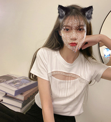 実価実況ショット~パーフェクト透けてセクシーなフリンジの半袖Tシャツ