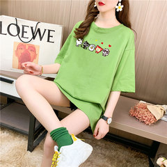 半袖Tシャツ女性夏の新商品の中で、長めの丸首学生の上着の大きいサイズの婦人服。
