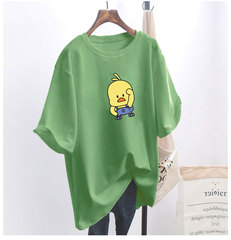 5つの色の夏季の太いMM 200斤の増大のコードの中で長い項の純綿の韓国版の半袖Tシャツの女性