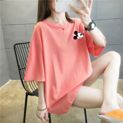 05つの色の夏季の太いMM 200斤はコードの中で長い項の純綿の韓国版の半袖Tシャツの女性を増大します。