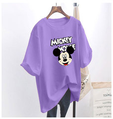 5つの色の夏季の太いMM 200斤の増大のコードの中で長い項の純綿の韓国版の半袖Tシャツの女性