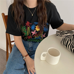 夏シーズンの新作落書きプリント半袖Tシャツ女性のゆったりカジュアル丸首Tシャツ