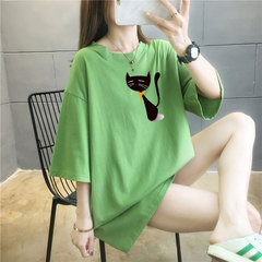 5つの色の夏季の太いMM 200斤の増大のコードの中で長い項の純綿の韓国版の半袖Tシャツの女性